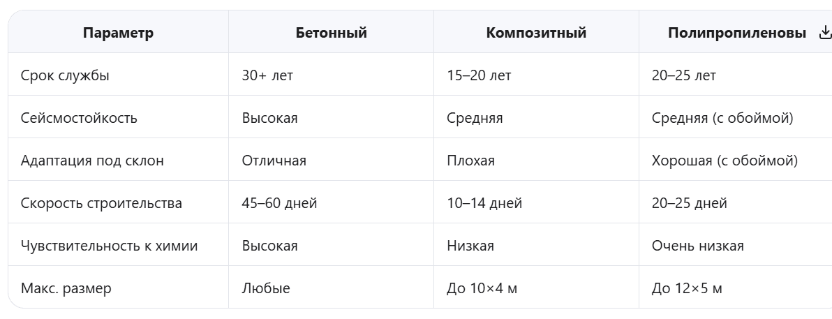 Материал чаши должен гасить эти нагрузки без трещин. Иначе вода уйдёт в грунт за сутки — а ремонт обойдётся дороже строительства.